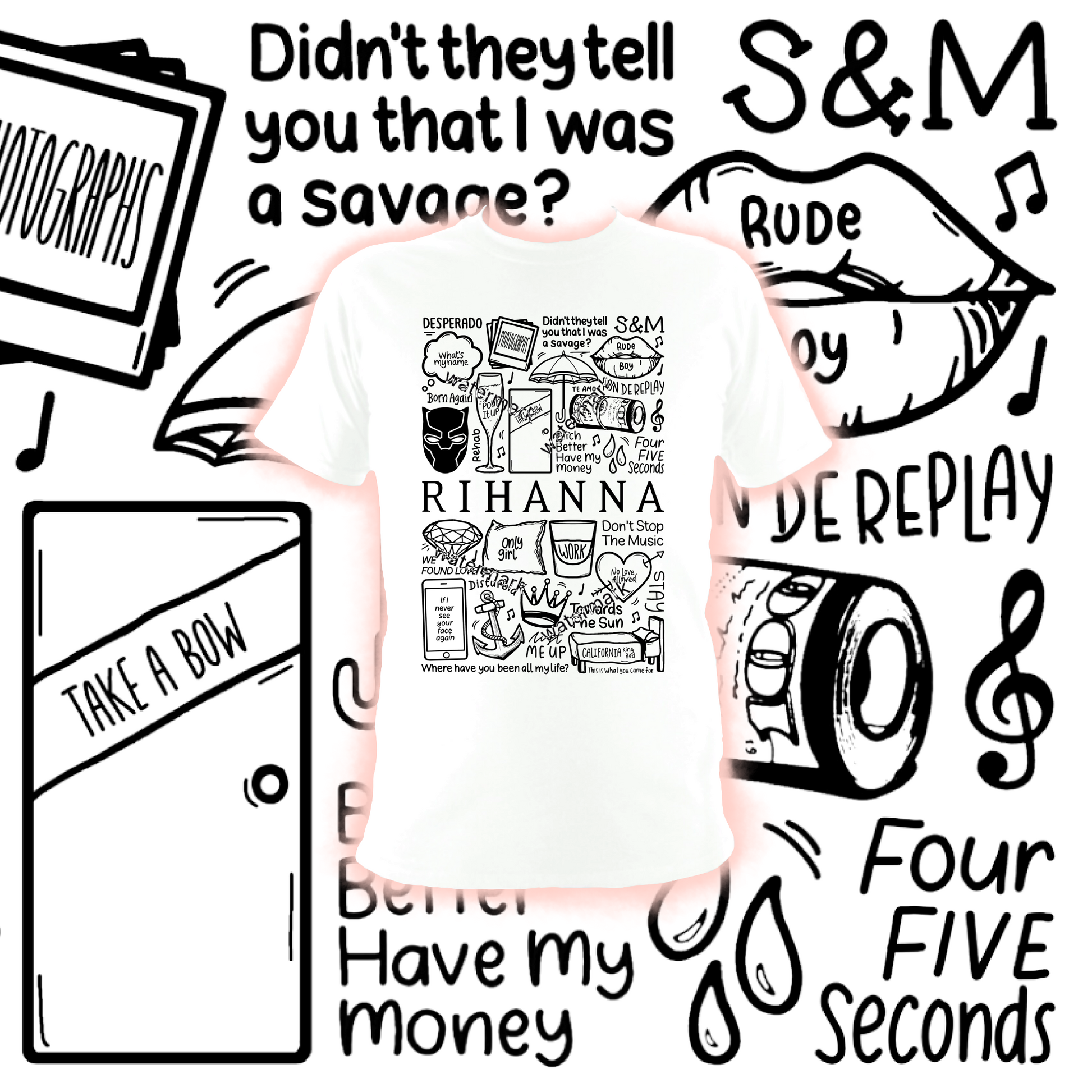 T-shirt unisexe Rihanna en coton imprimé professionnellement en noir ou blanc.