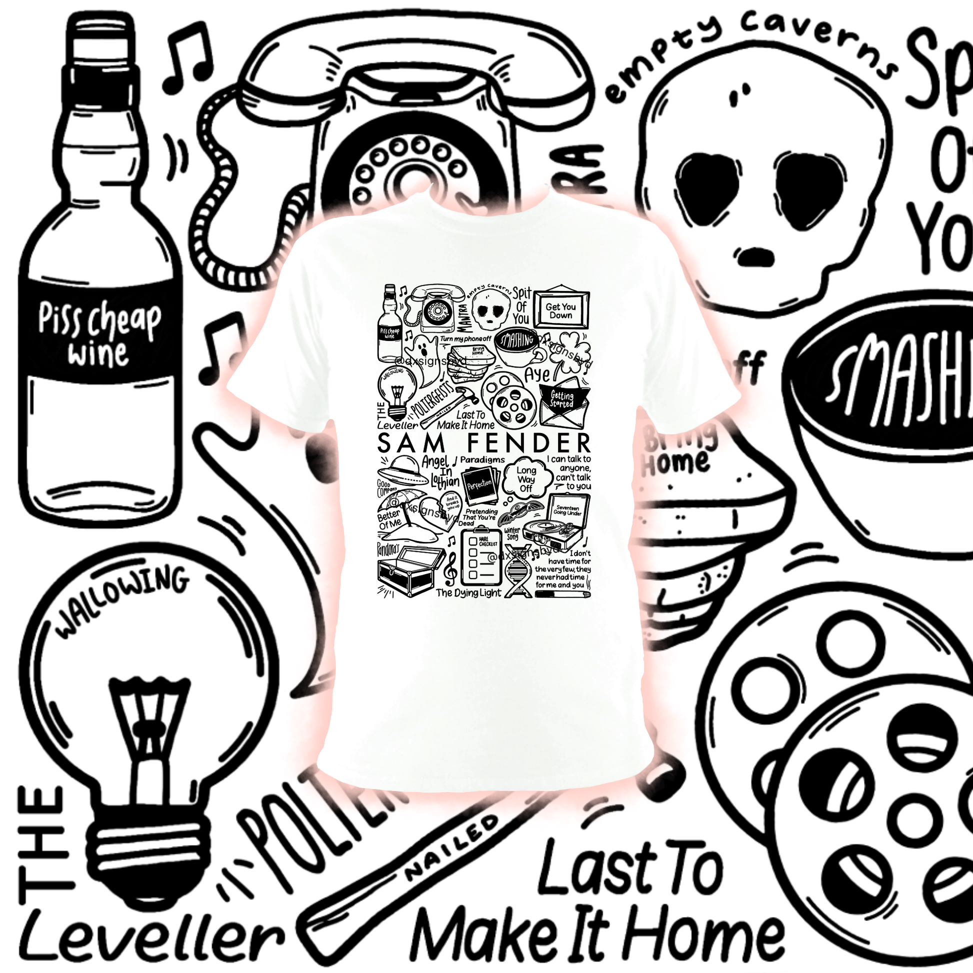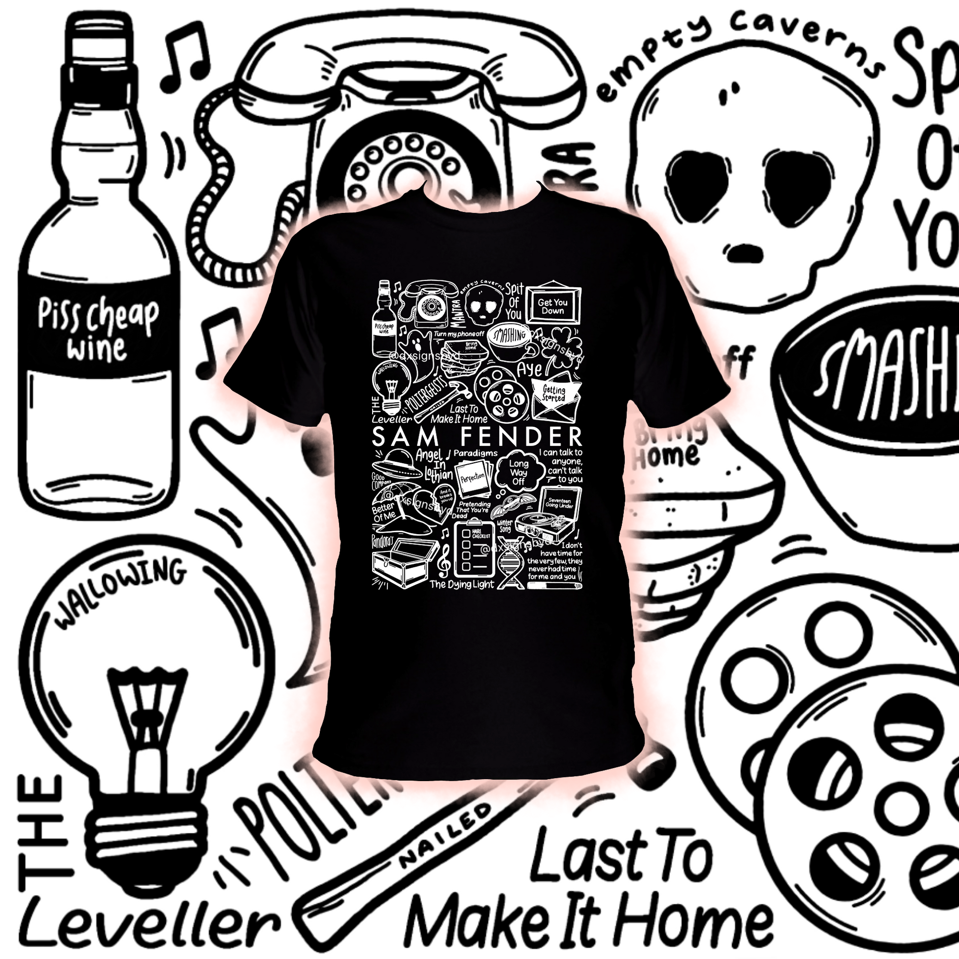 🎶 T-shirt unisexe en coton imprimé professionnellement par Sam Fender en noir ou blanc. Incluant toutes les chansons de son album Seventeen Going Under.