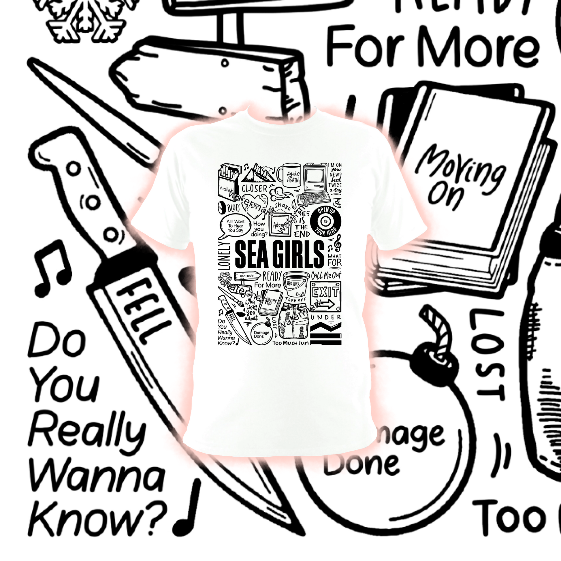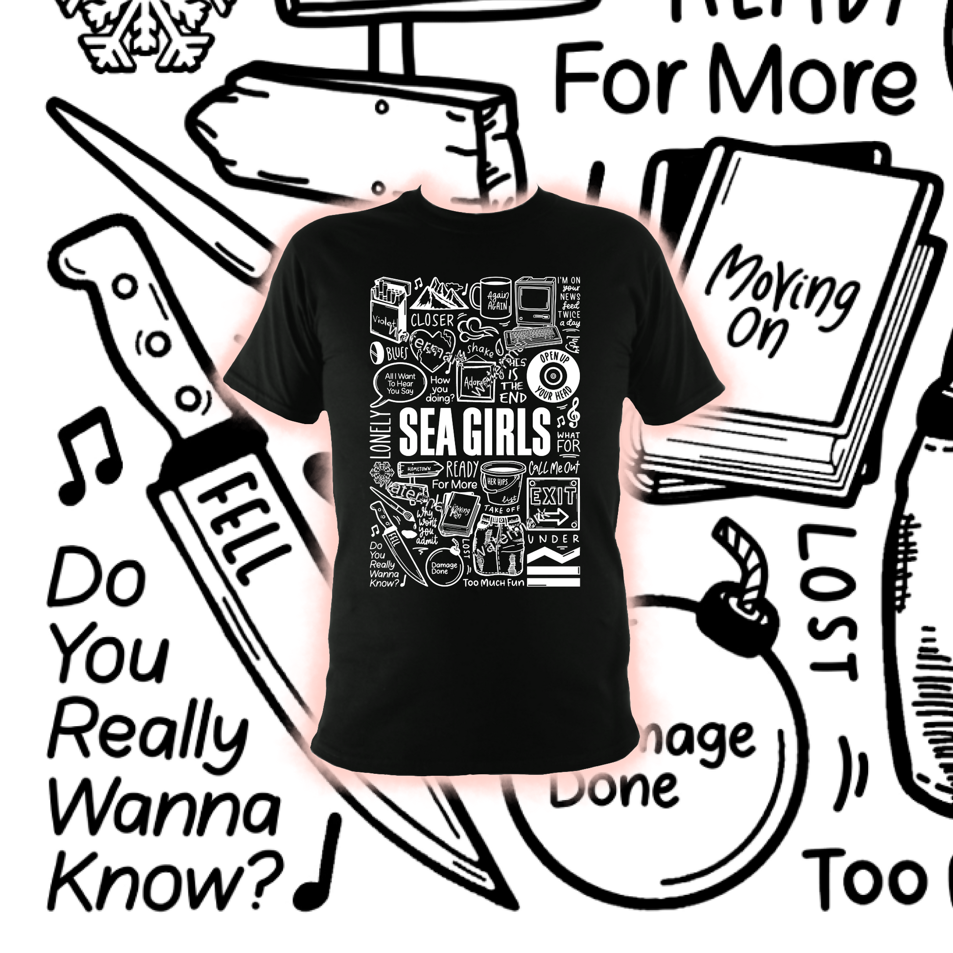 T-shirt unisexe Sea Girls en coton imprimé professionnellement en noir ou blanc.