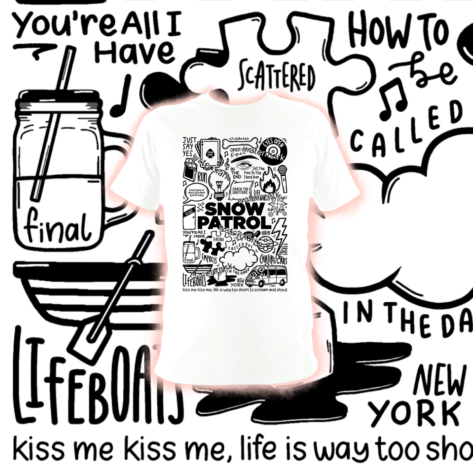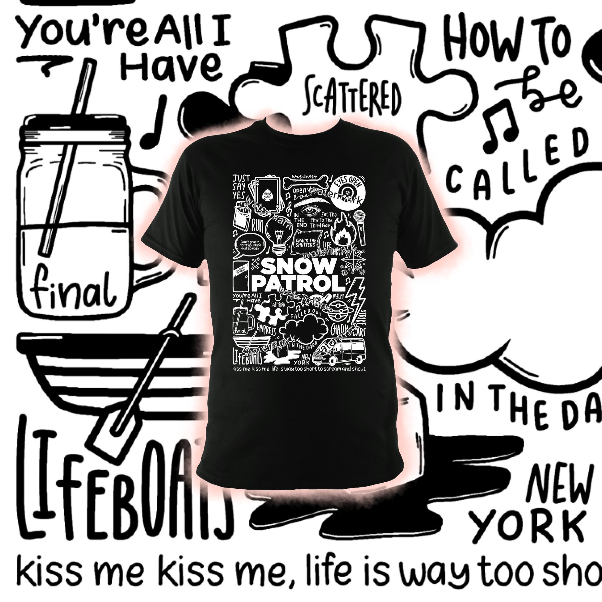 T-shirt unisexe Snow Patrol en coton imprimé professionnellement en noir ou blanc.