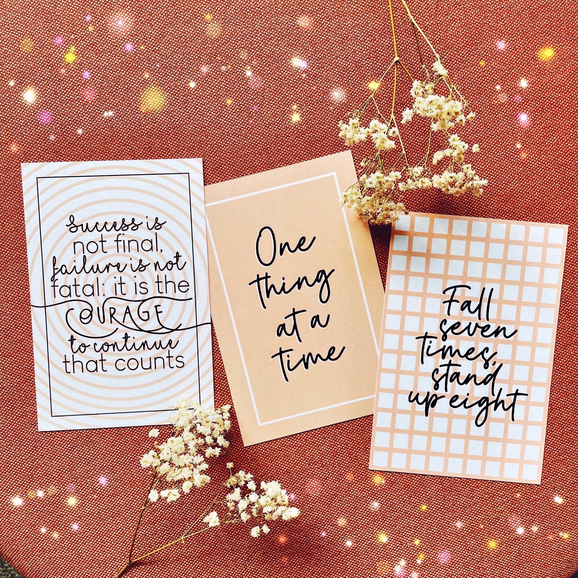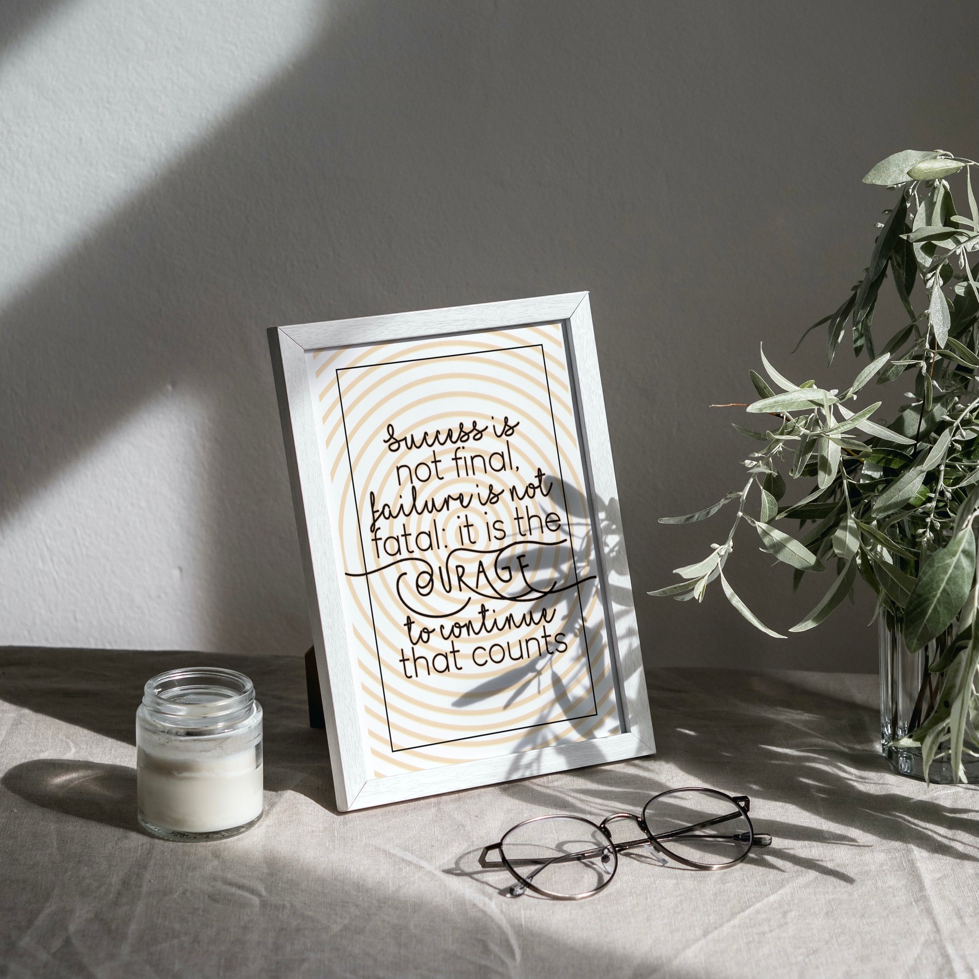 🧡Affiche positive avec la citation « Le succès n'est pas définitif, l'échec n'est pas fatal : c'est le courage de continuer qui compte ».