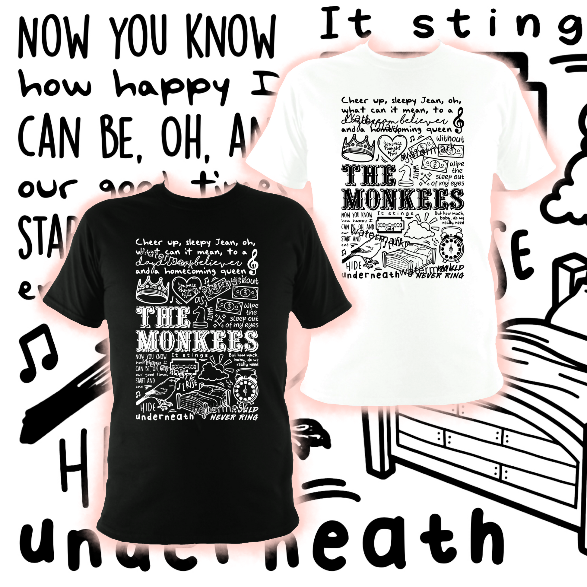 Haut unisexe en coton imprimé professionnellement The Monkees Daydream Believer en noir ou blanc.