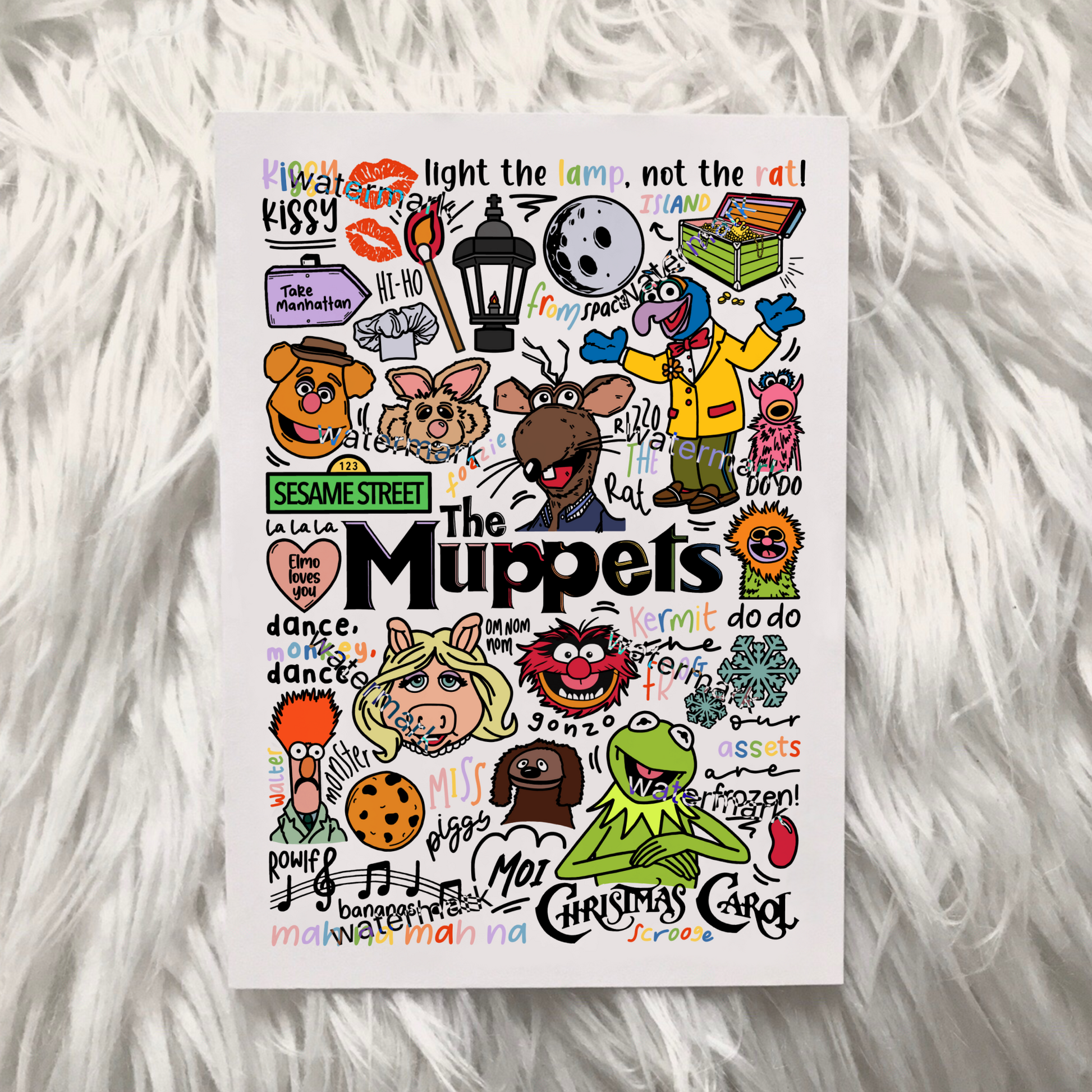 🎥The Muppets show poster which includes images, characters and quotes from the series and films, such as a Christmas Carol.