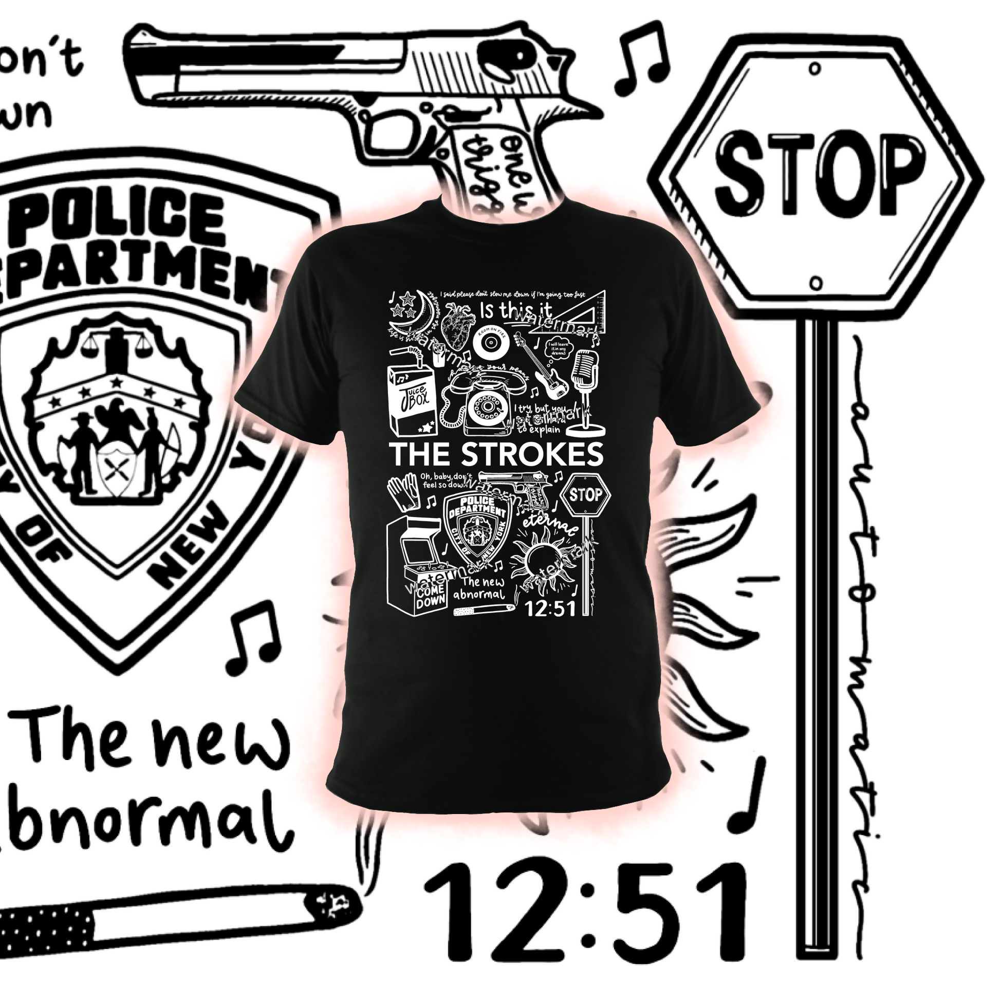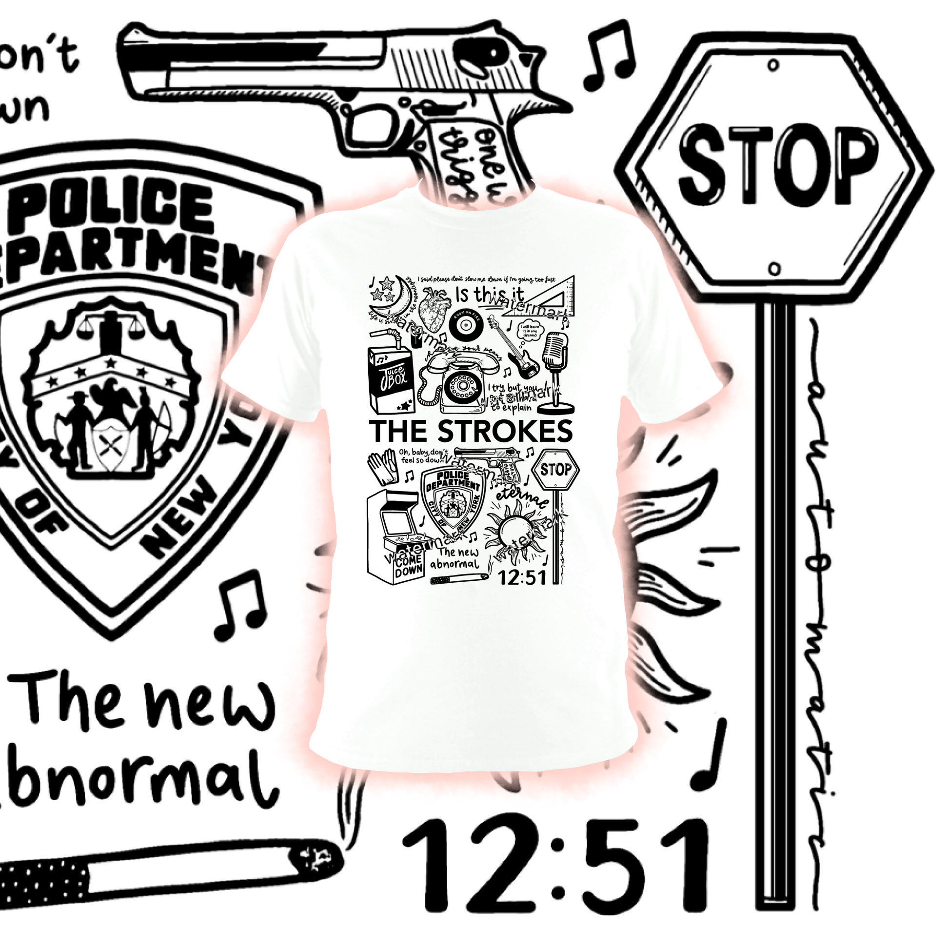 🎶 Coton unisexe imprimé professionnellement The Strokes t-shirt en noir ou blanc.
