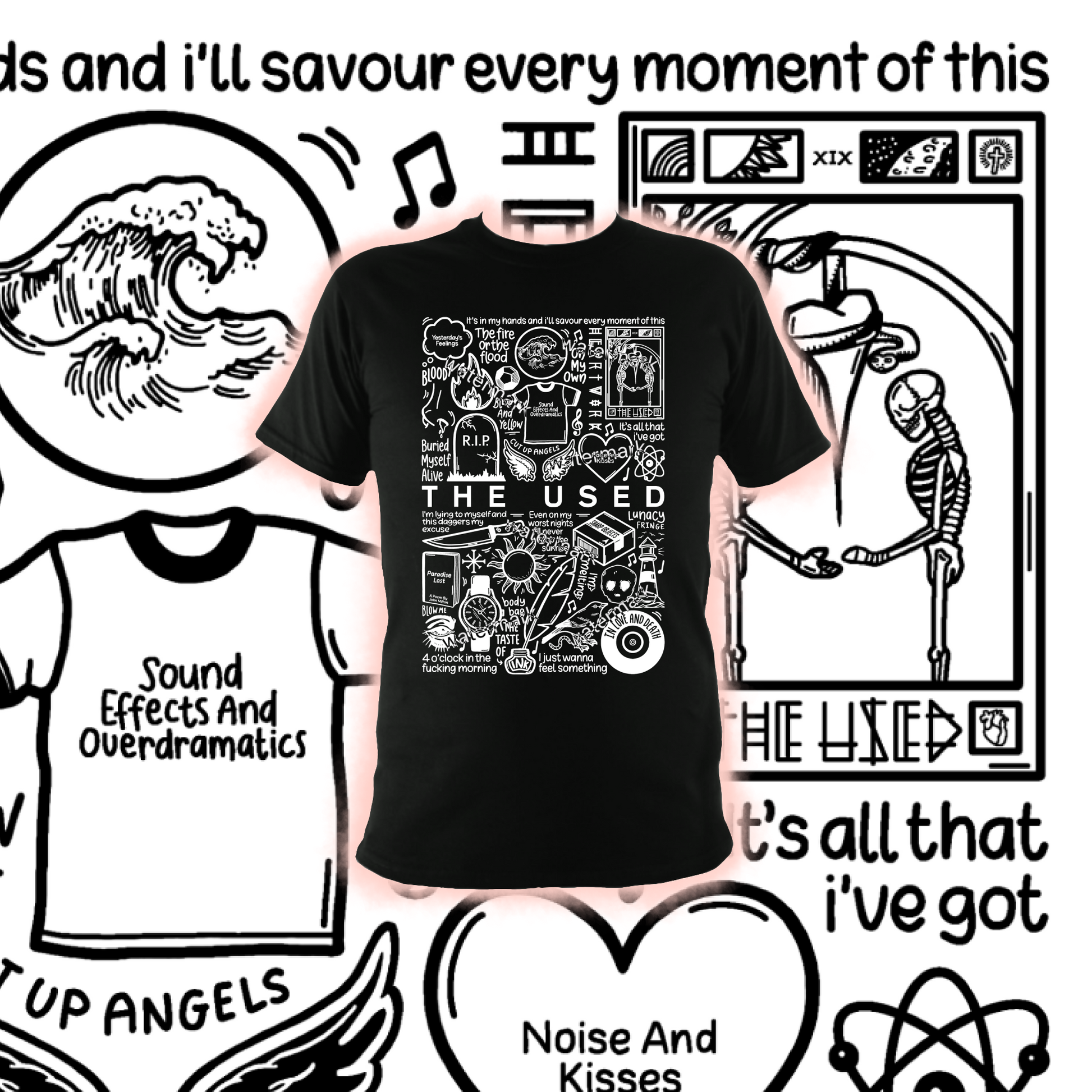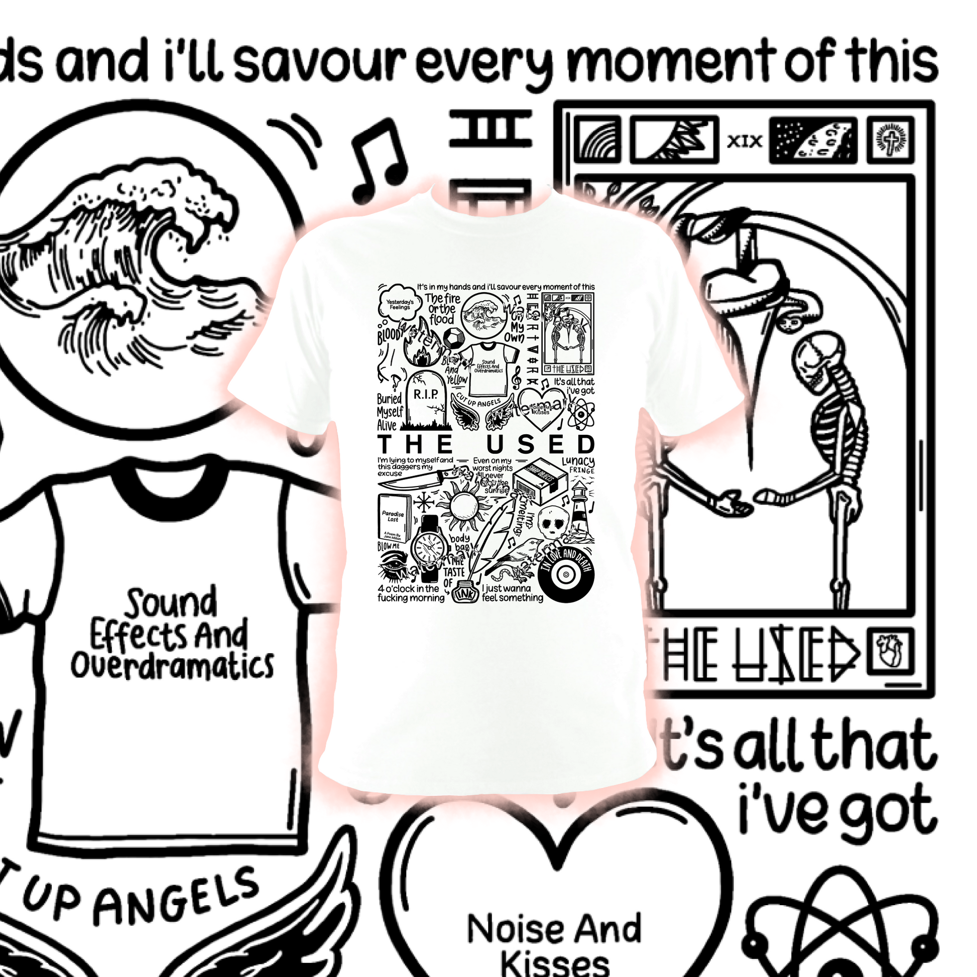 🎶 T-shirt unisexe en coton imprimé professionnellement Le T-shirt Used en noir ou blanc.