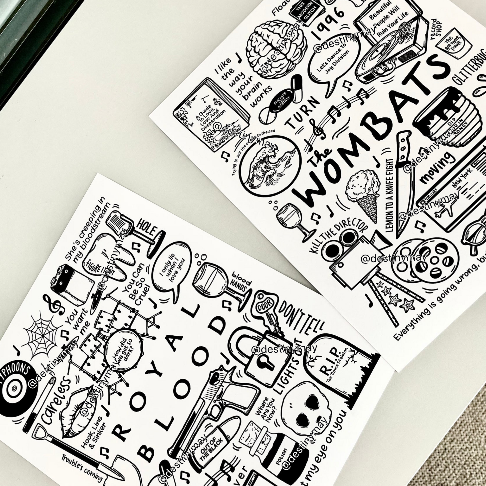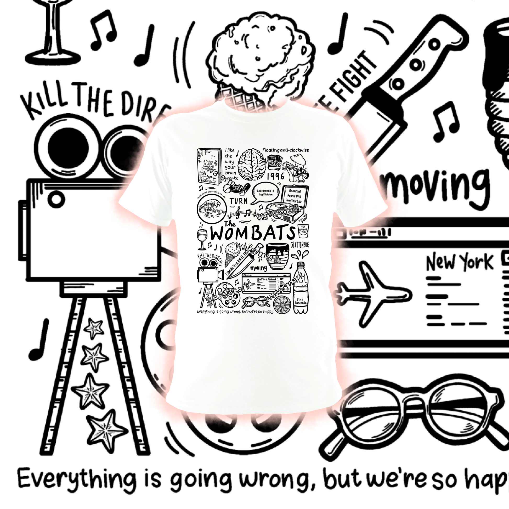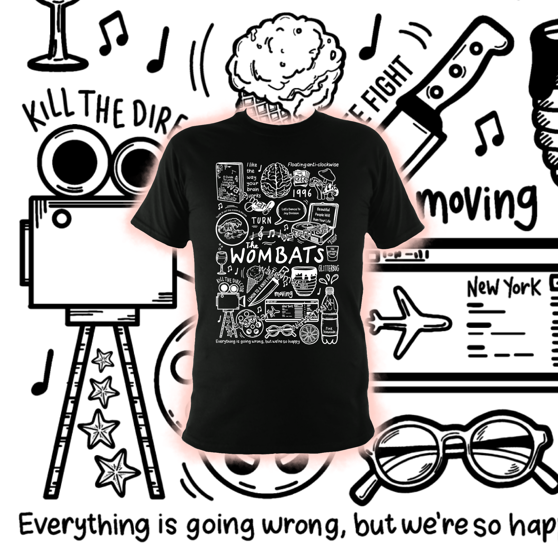 🎶 Coton unisexe imprimé professionnellement The Wombats t-shirt en noir ou blanc.