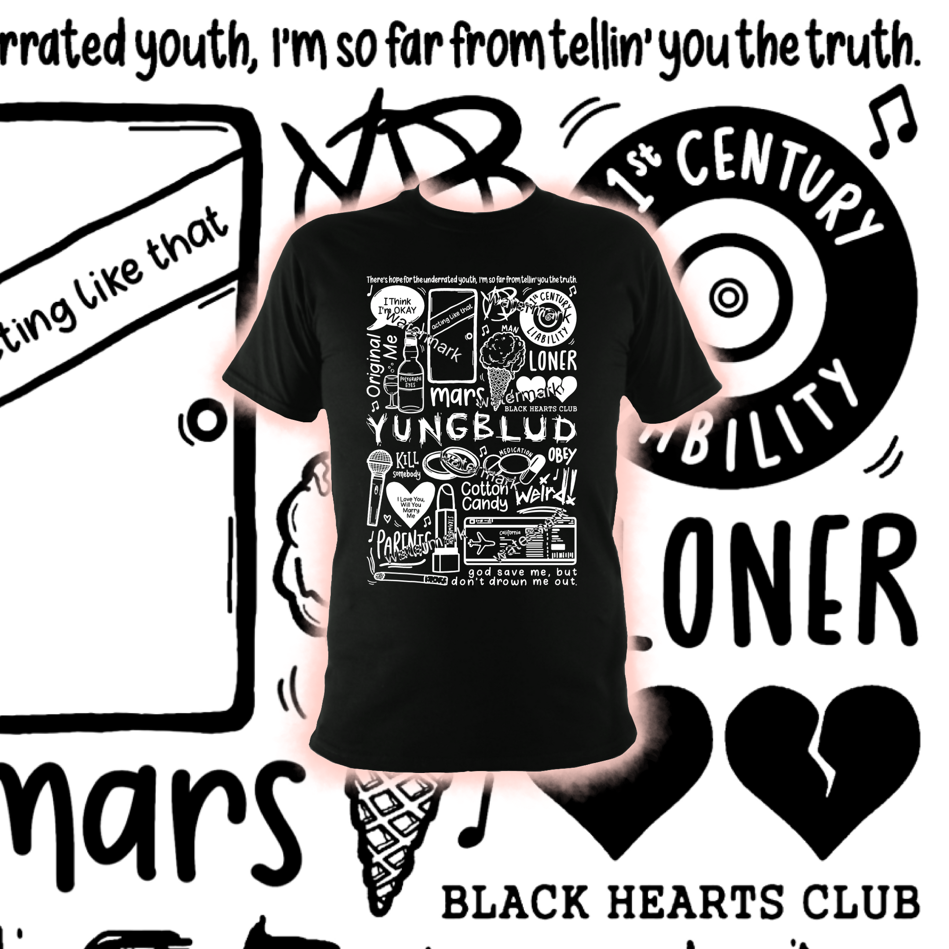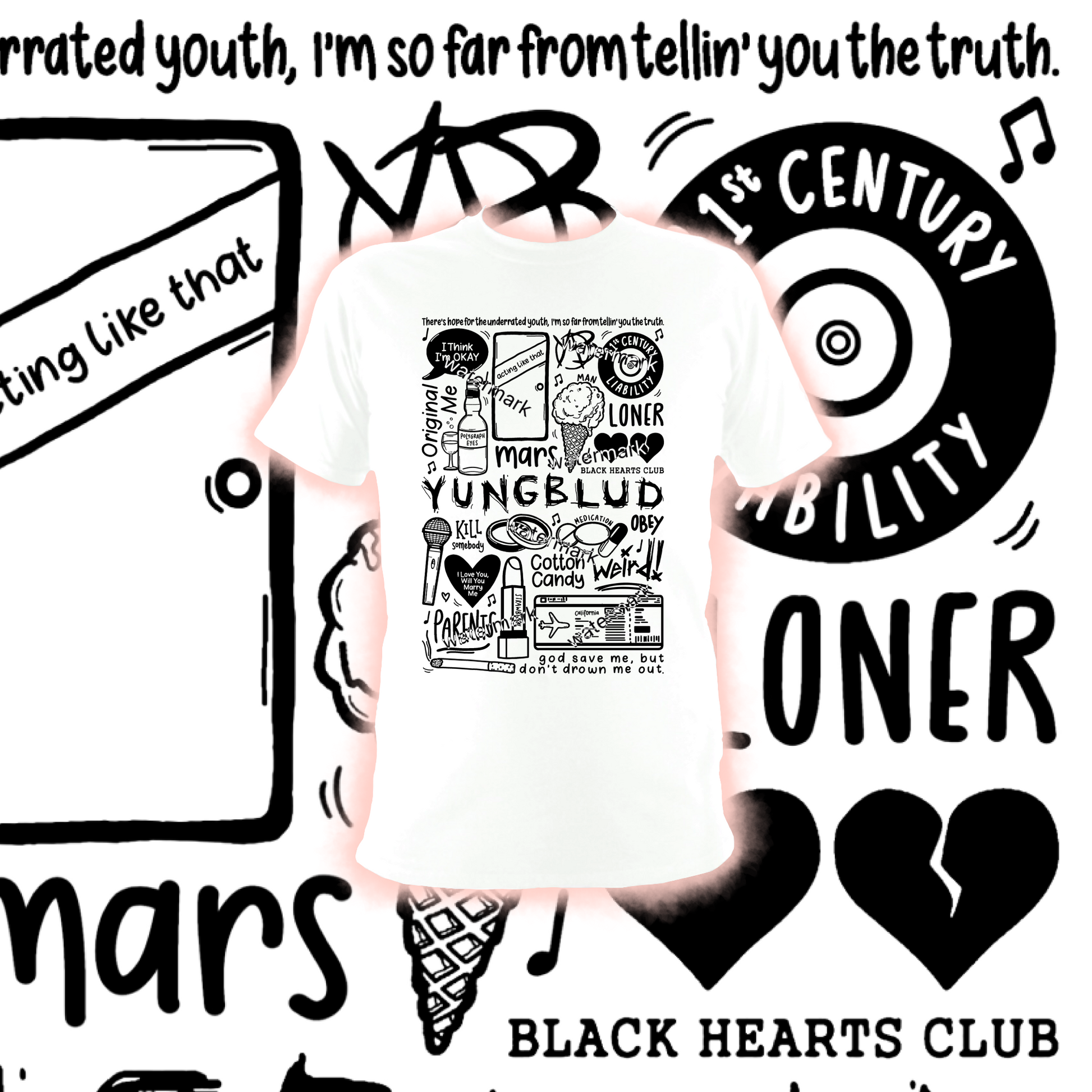 T-shirt unisexe Yungblud en coton imprimé professionnellement en noir ou blanc.