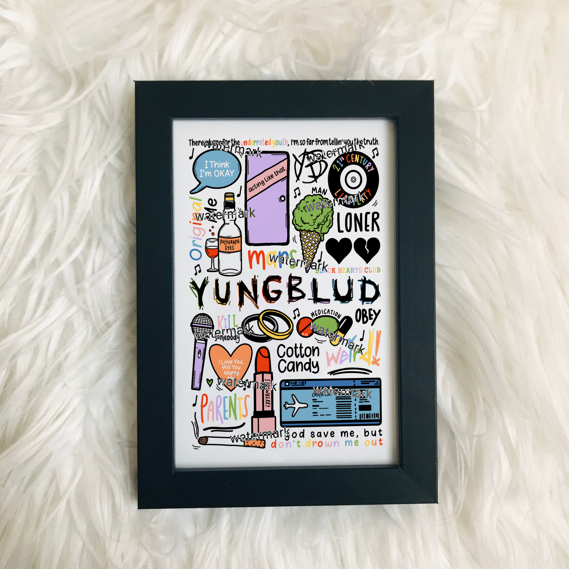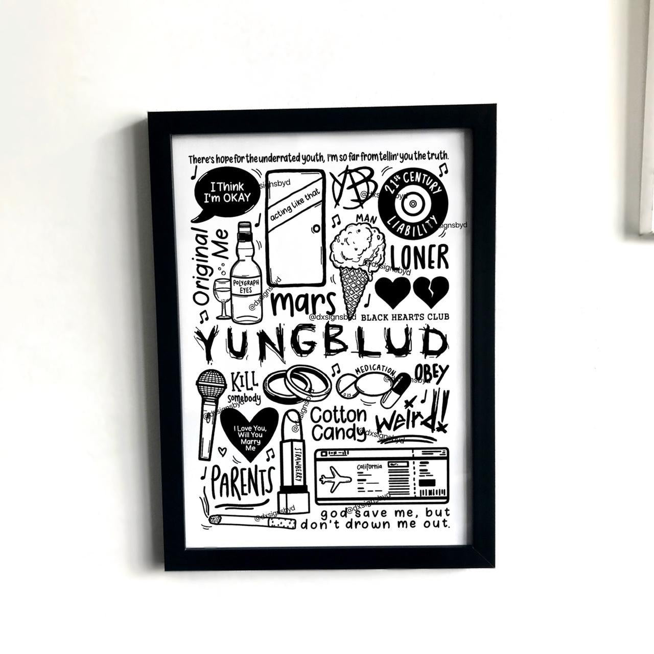 🎶Affiche Yungblud qui comprend des images et des paroles de chansons de leurs albums 21st Century Liability et weird !