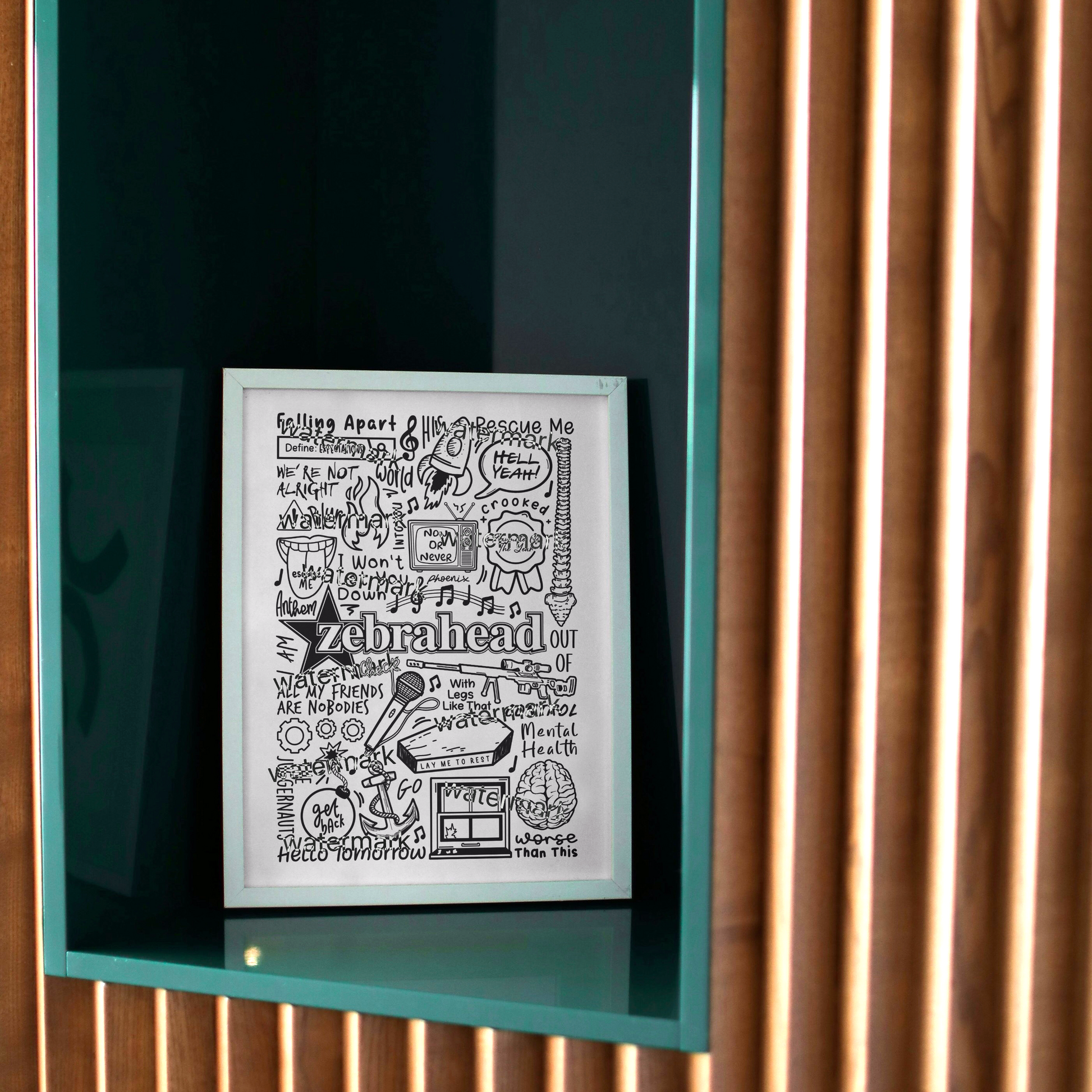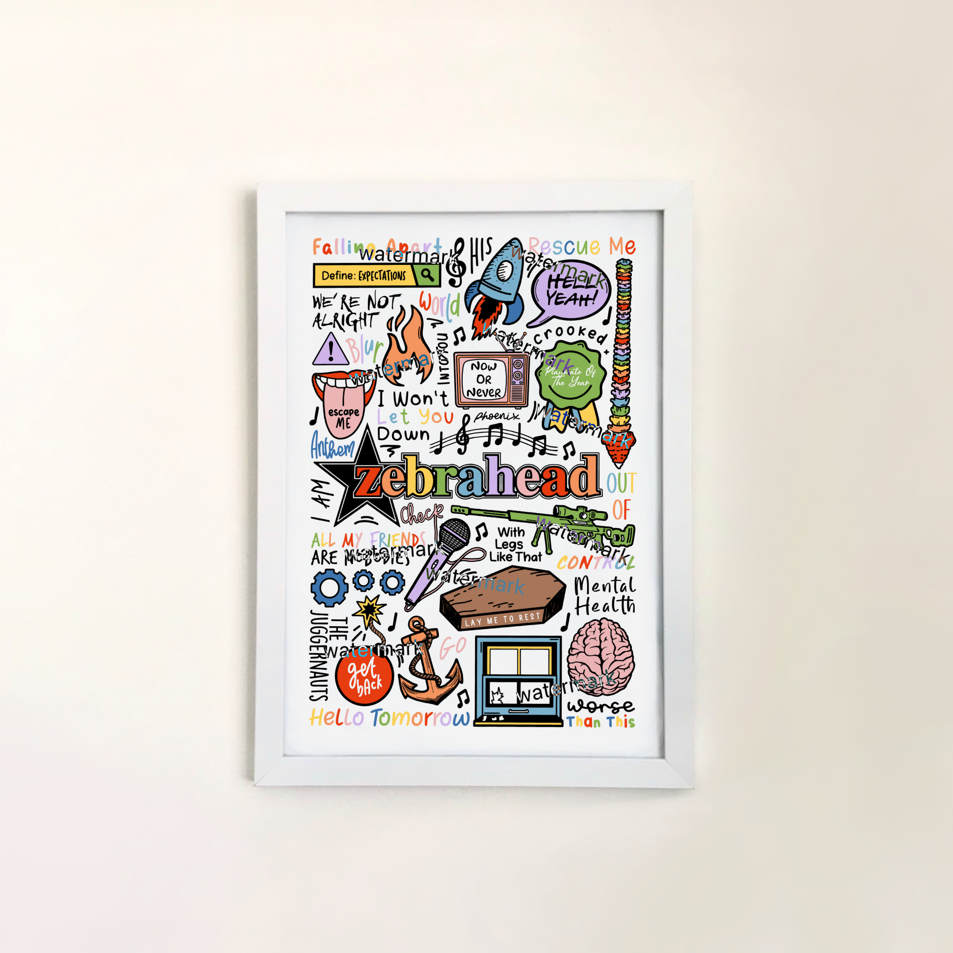 🎶 Art mural Zebrahead comprenant des images, des paroles et des titres de chansons de leurs albums.