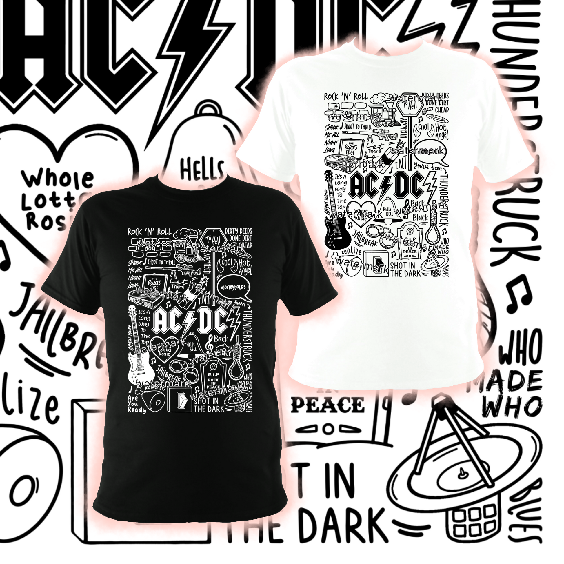 🎶Professionally printed cotton unisex ACDC top in black or white.