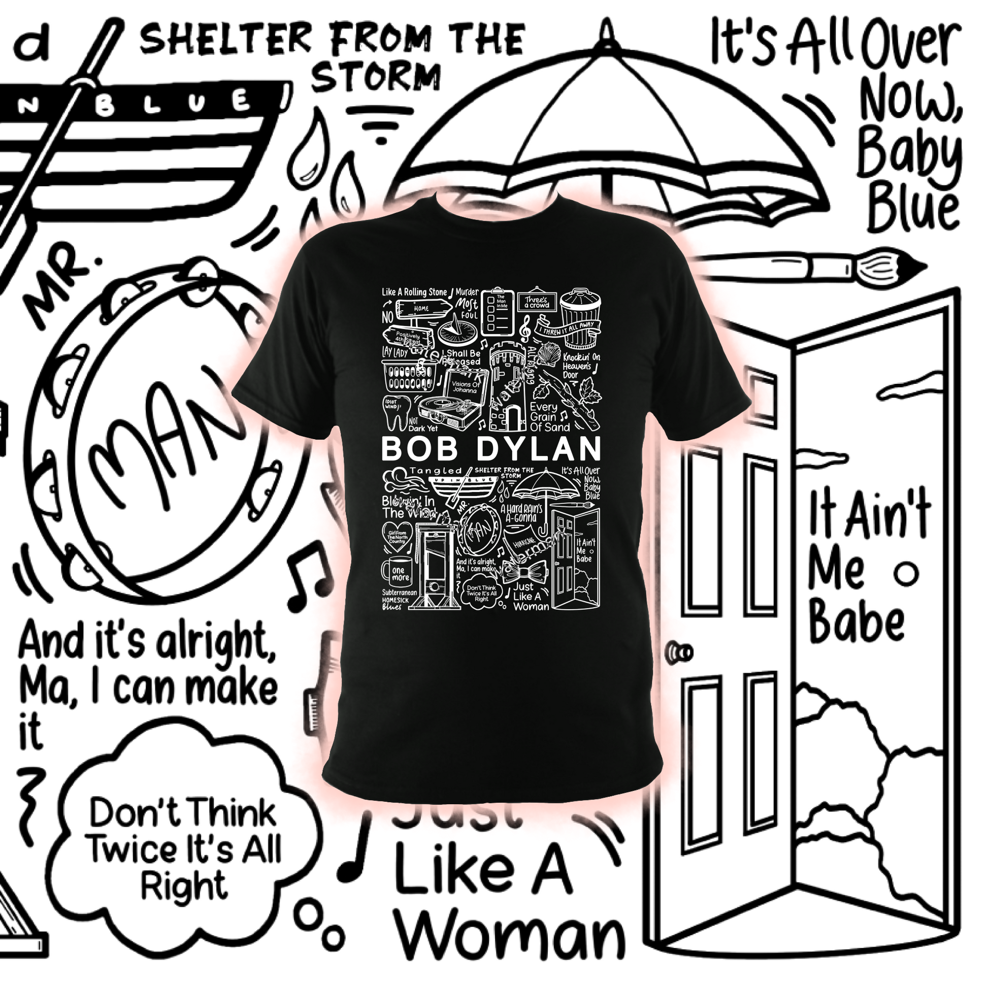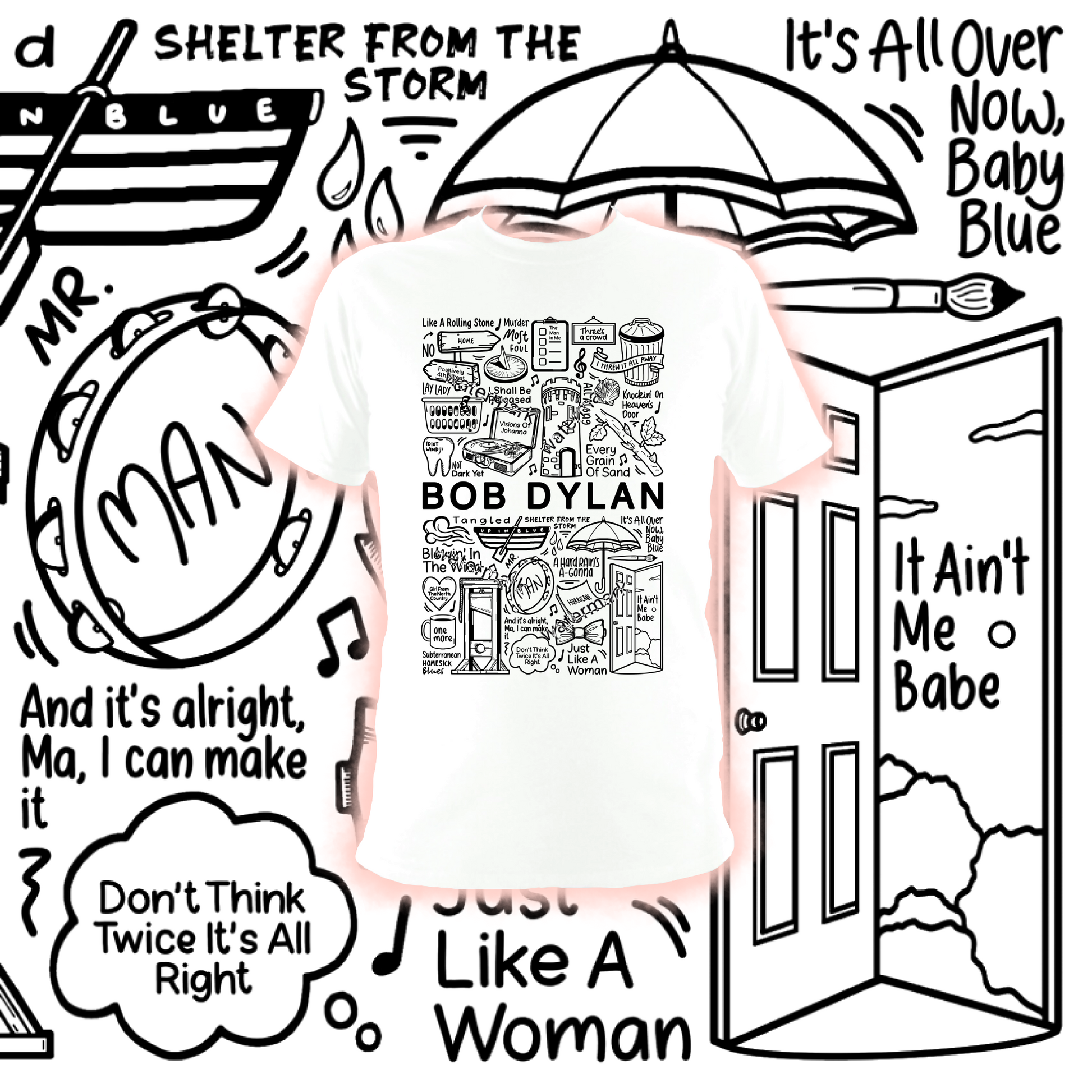 🎶Professionally printed cotton unisex Bob Dylan t-shirt in black or white.