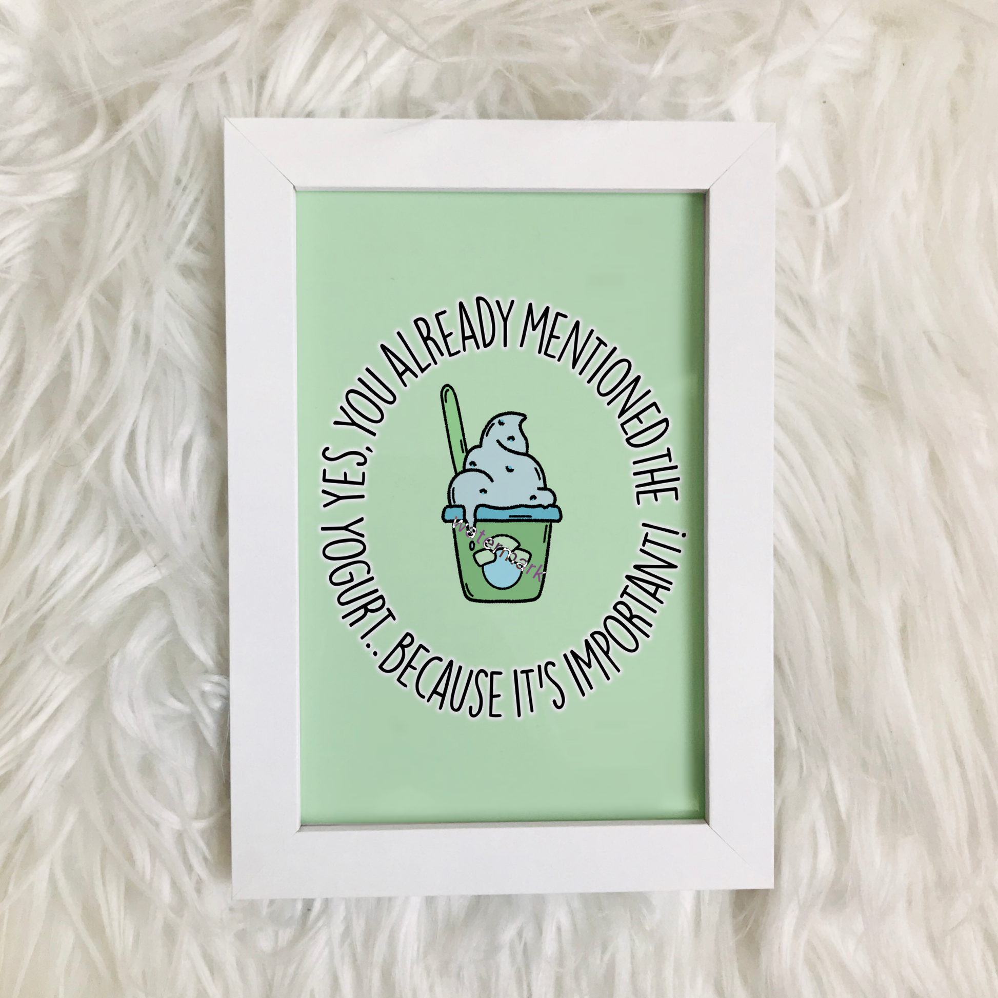 🧁Brooklyn 99 Terry and Captain Holt quote ‘Yes you already mentioned the yogurt’ ‘Because it is important!’ on a green background.