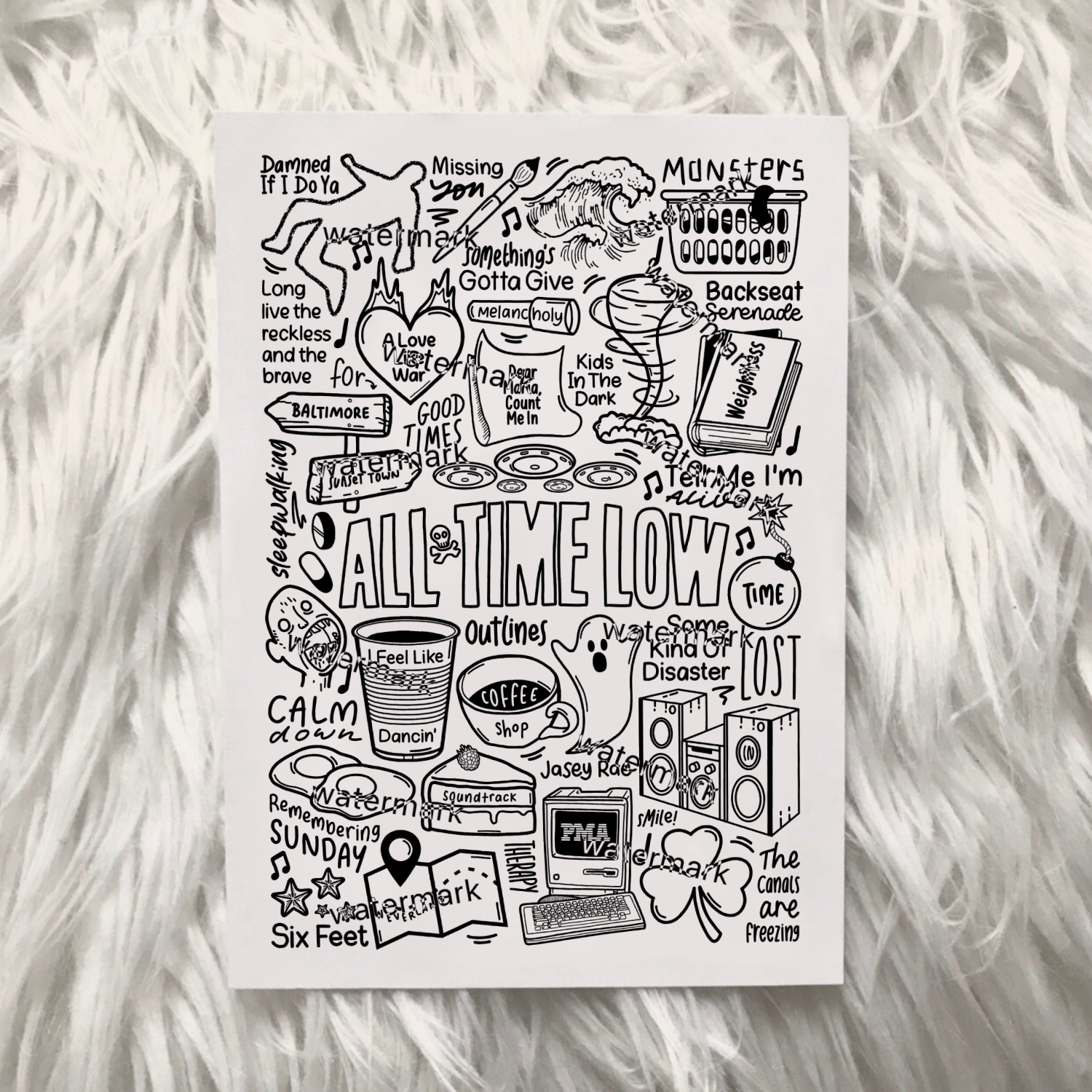🎶All Time Low poster including images and lyrics of songs from their albums.