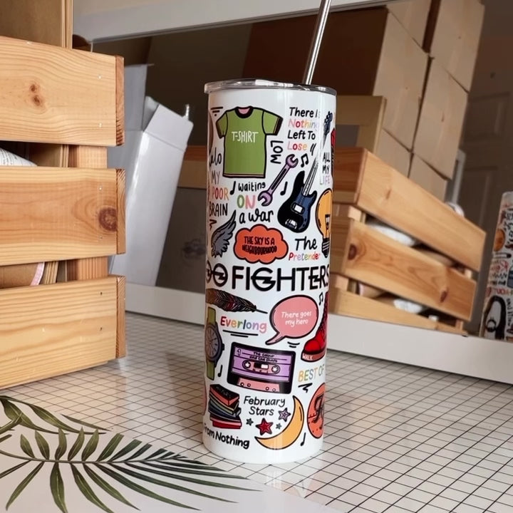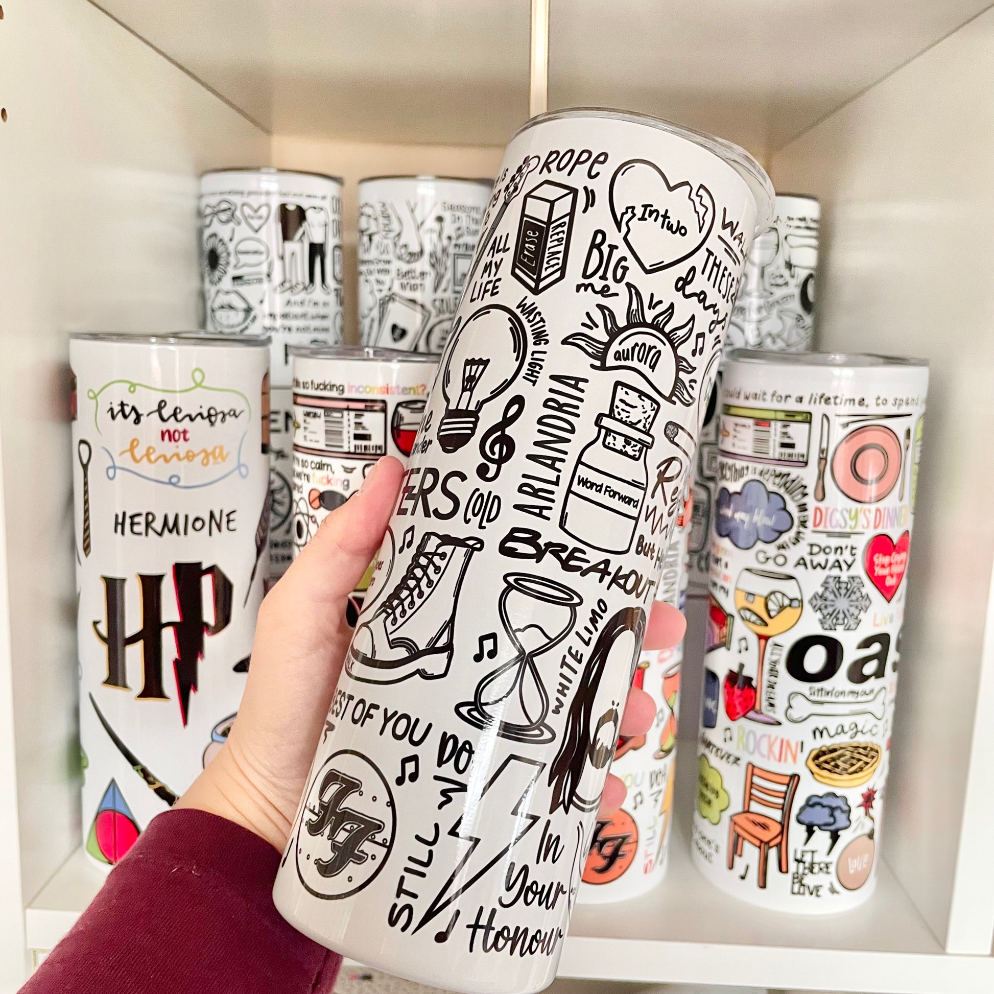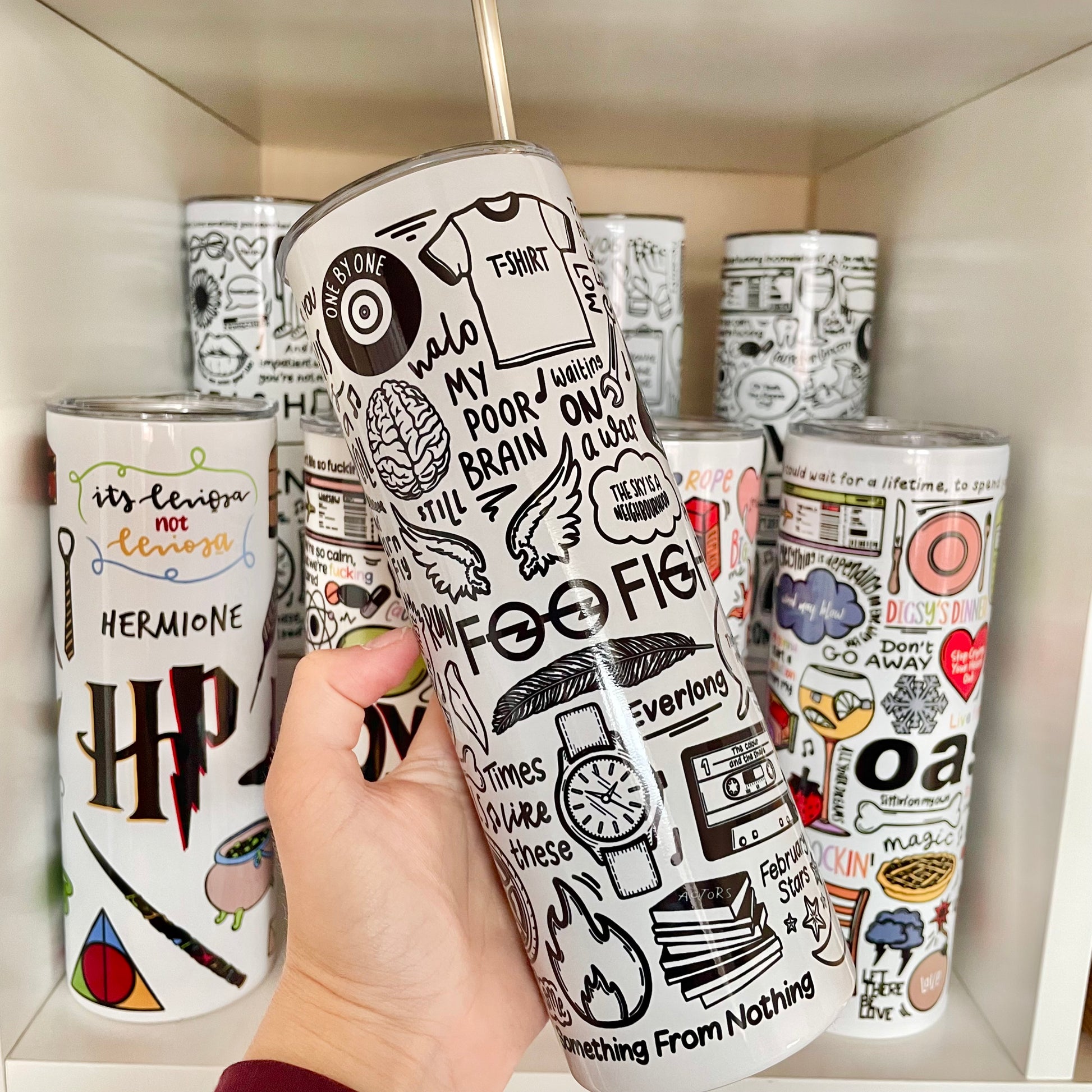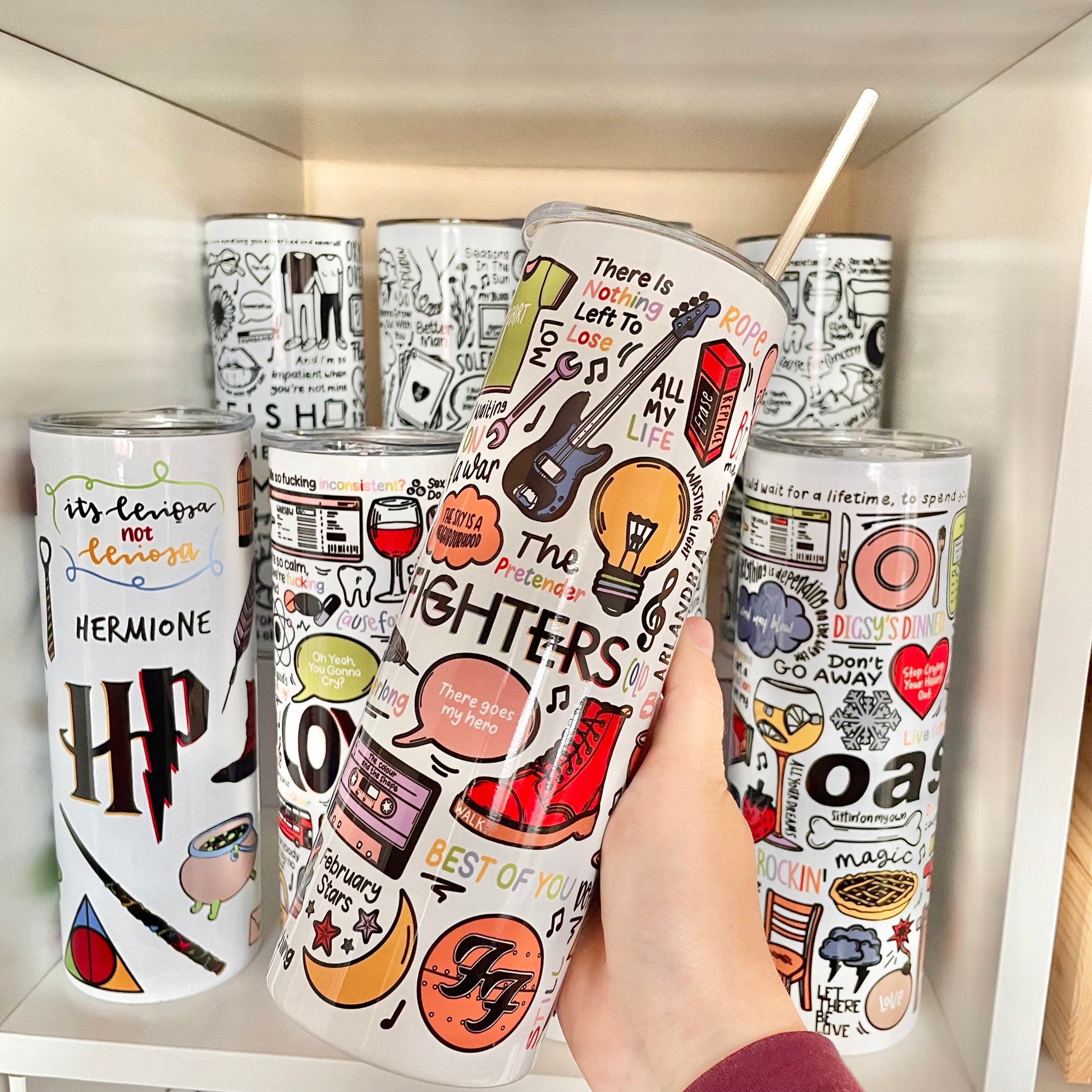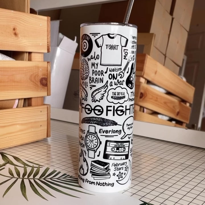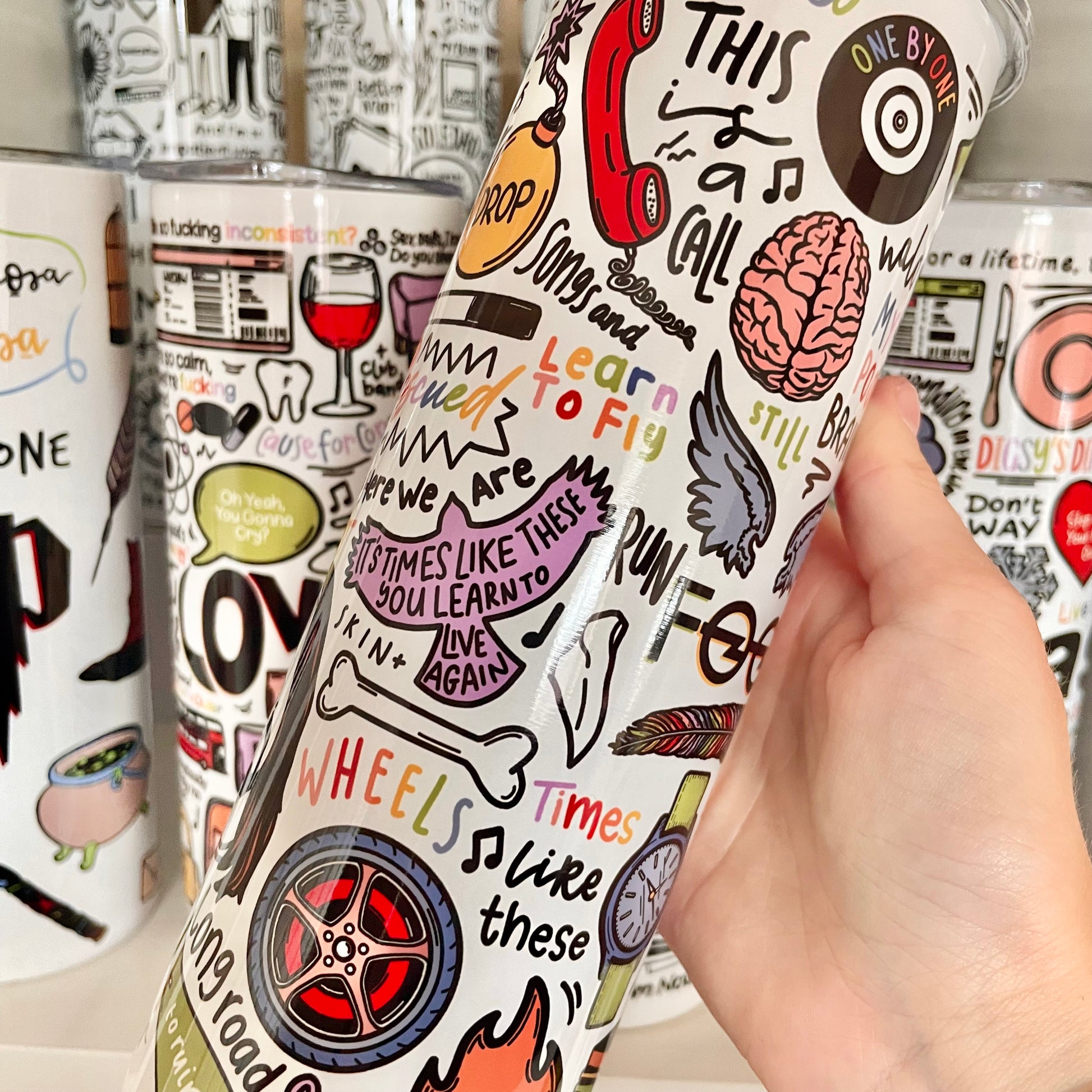 🥤Get lyrical with your beverages with our Foo Fighters travel drinks cup! This versatile cup keeps your drinks hot OR cold and your spirits high with fun lyrics and drawings printed all around the cup. Stay hydrated (and entertained) on the go with our tumblers🥰