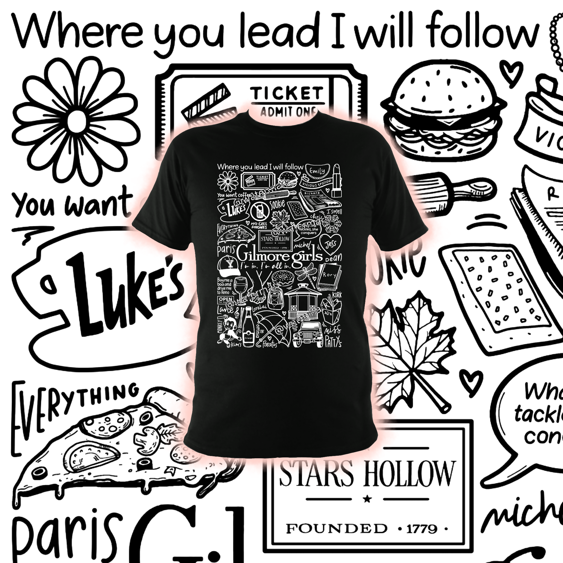 🎬Professionally printed cotton unisex Gilmore Girls t-shirt in black or white.
