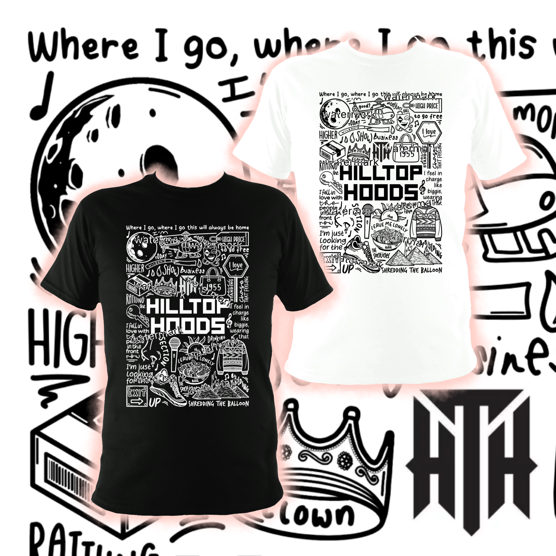 🎶Hilltop Hoods wall art including images, lyrics, and song titles from their albums.