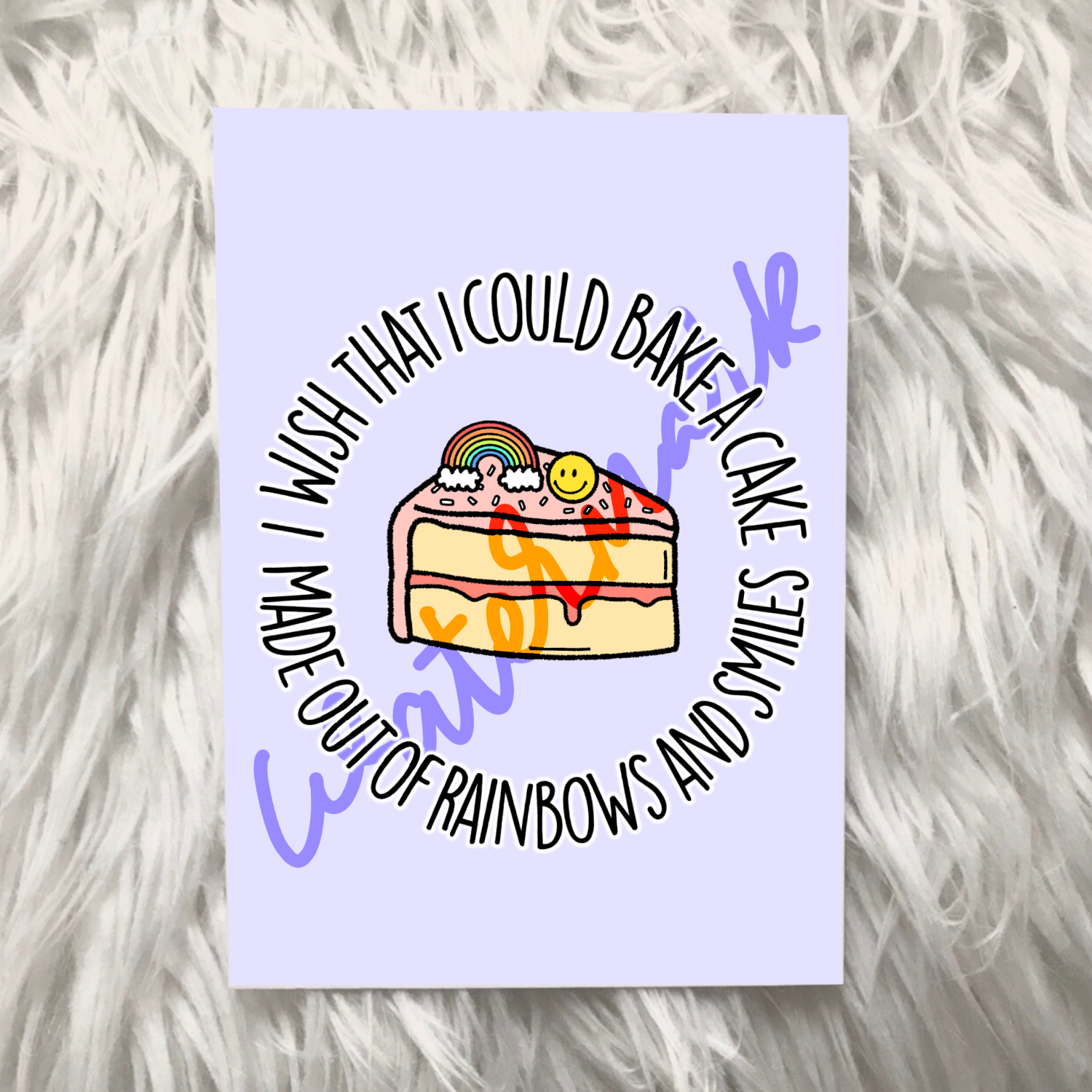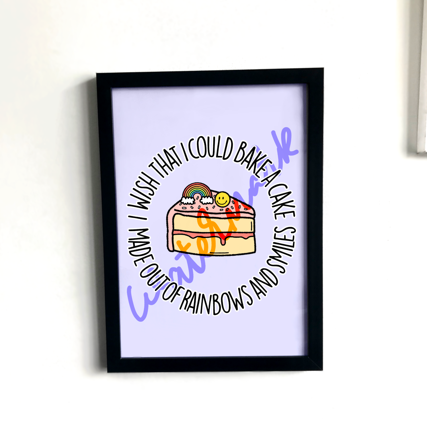 🎥Mean Girls print with the cake quote from the gym scene, ‘I wish that I could bake a cake made out of rainbows and smiles’.
