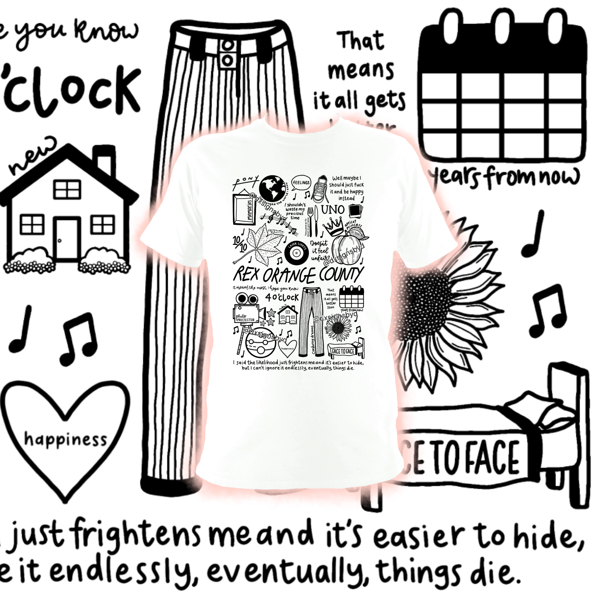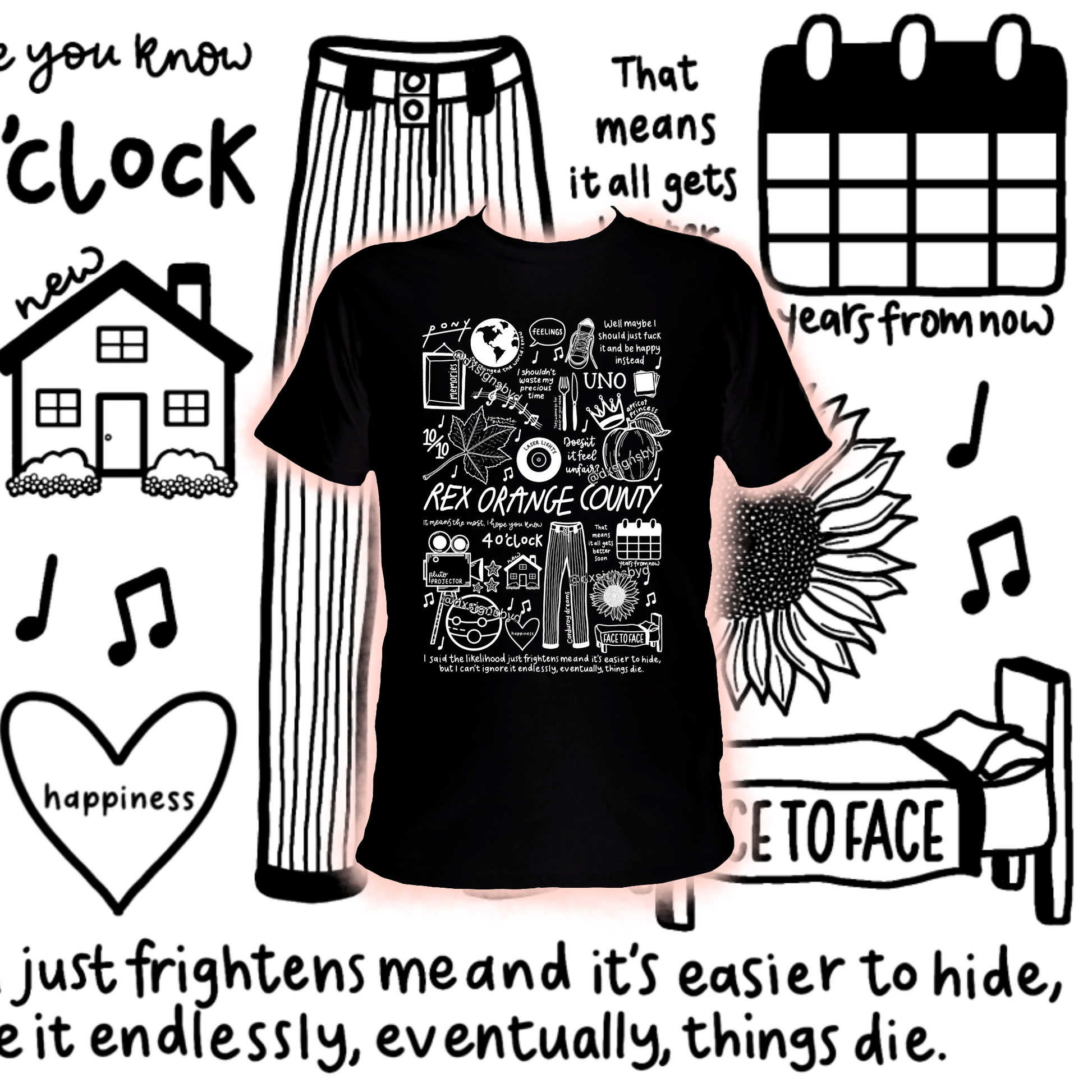 🎶Professionally printed cotton unisex Rex Orange County t-shirt in black or white.