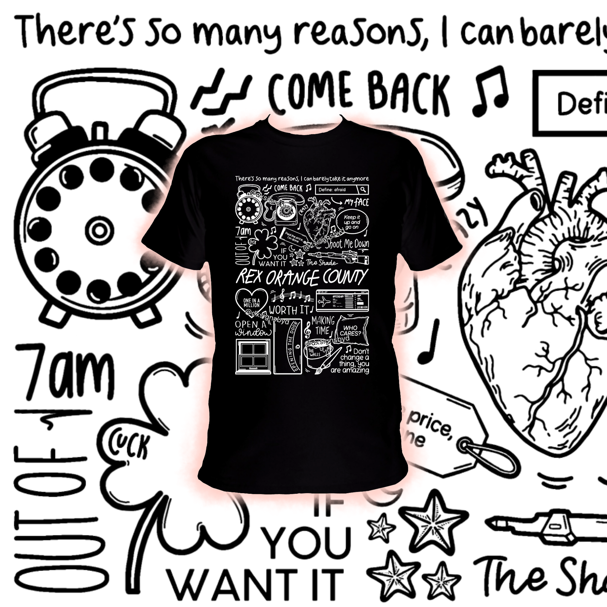 🎶Professionally printed cotton unisex Rex Orange County t-shirt in black or white. Including songs only from his most recent album WHO CARES?